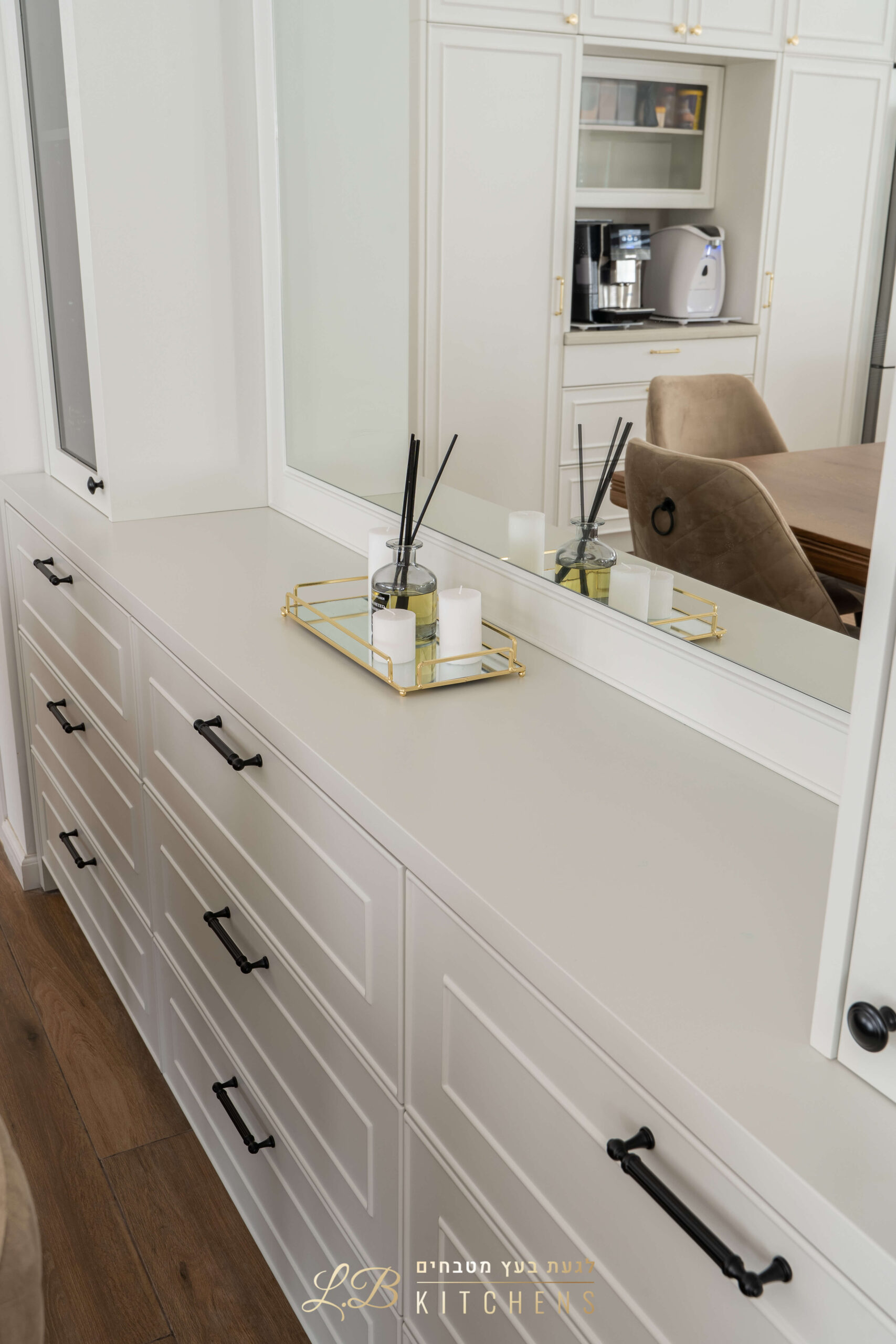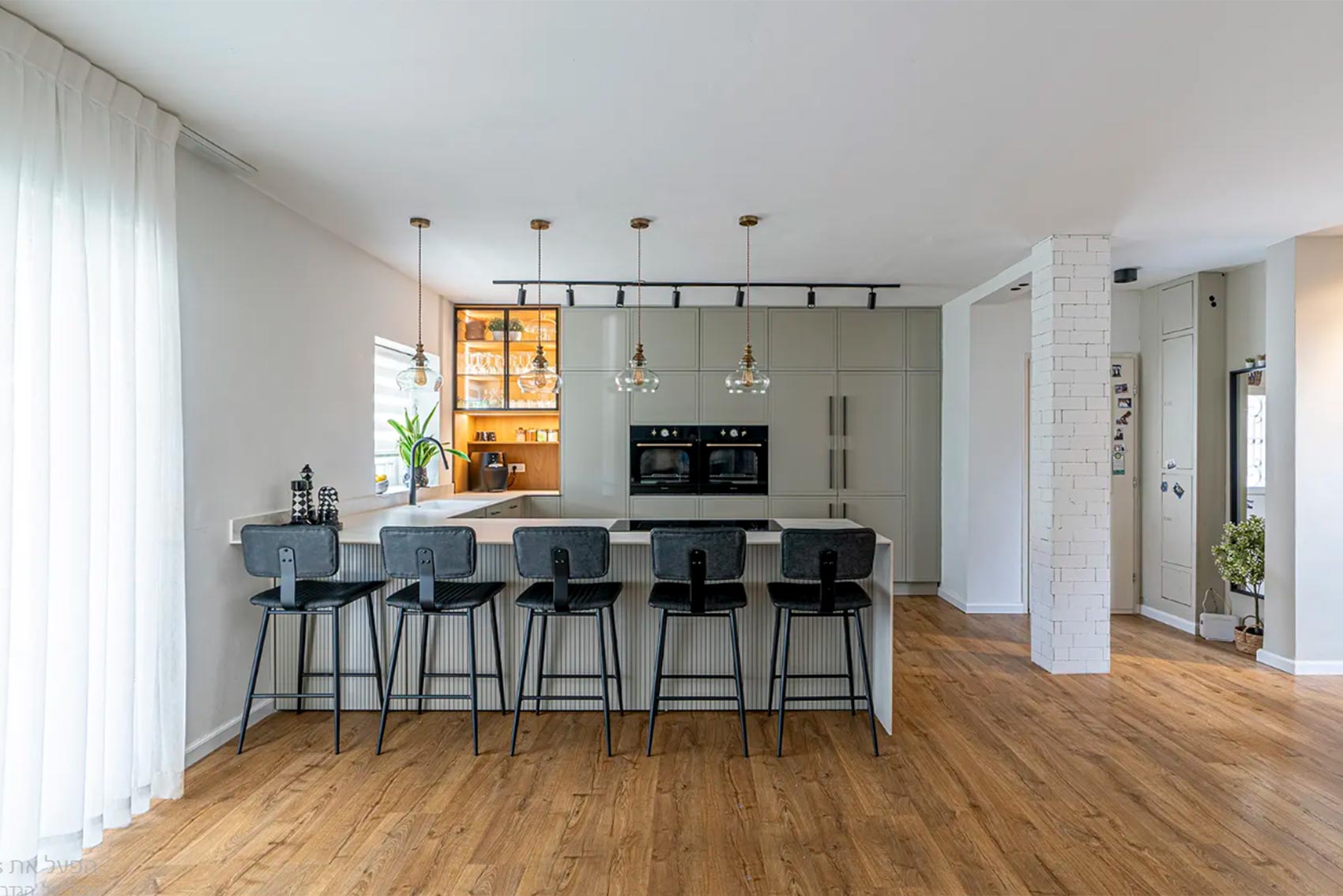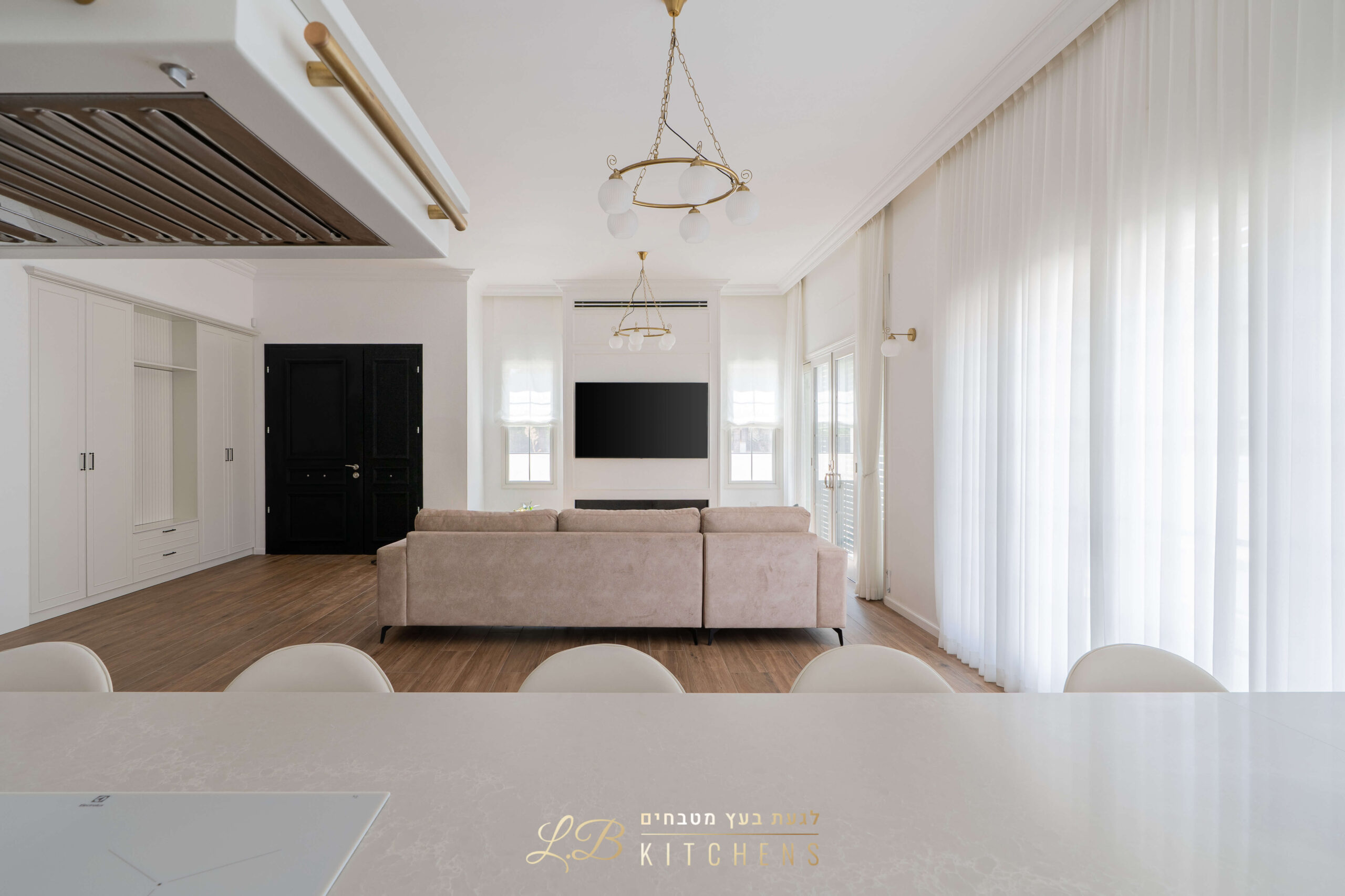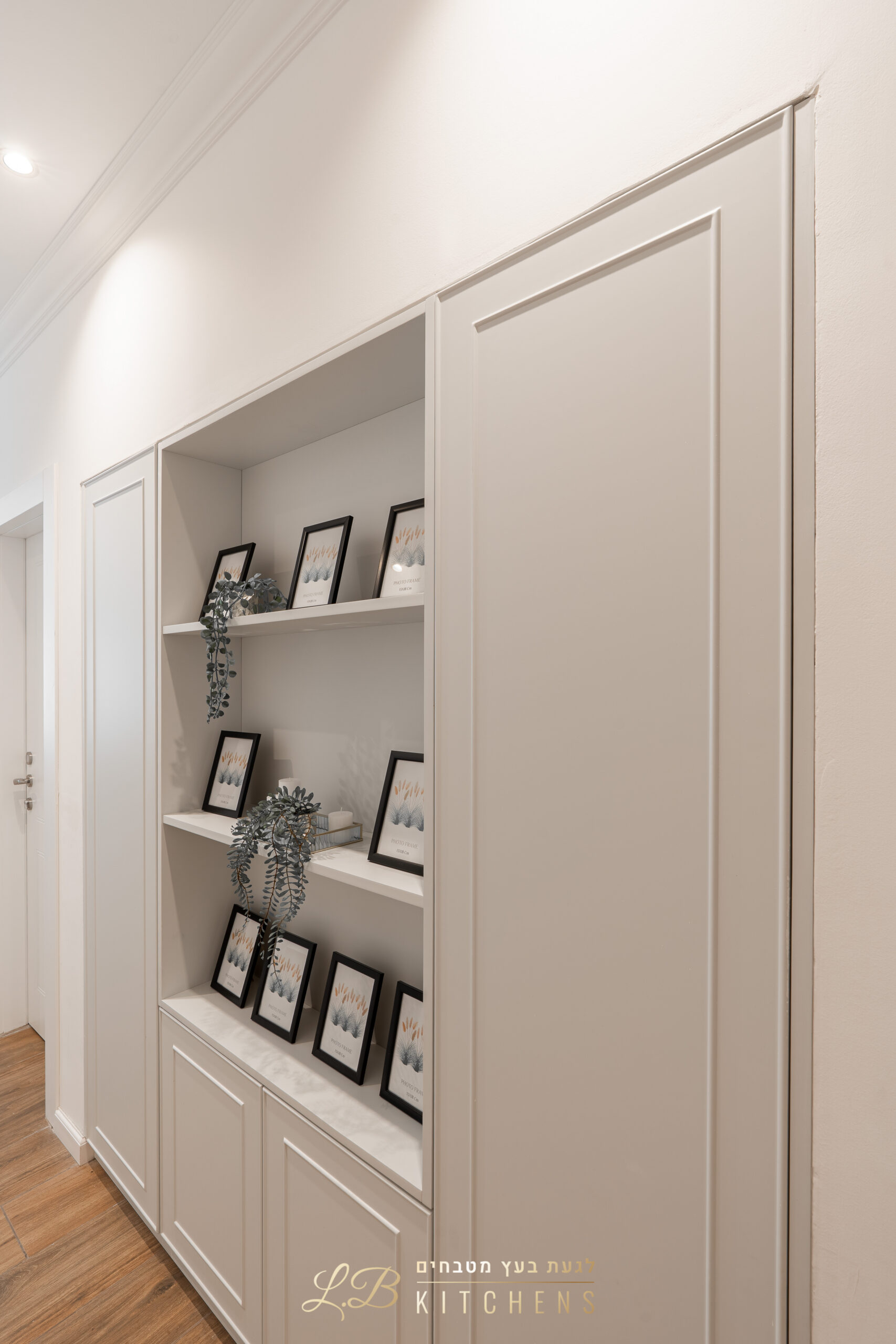 אבל מה שהופך את הקיר הזה לייחודי במיוחד – הוא המעבר הסמוי לחדר הממ”ד, המוסתר בתוך הנגרות בצורה חכמה ובלתי מורגשת. פתרון פונקציונלי מושלם שמתאים בדיוק לרוח התקופה בה אנחנו חיים – כשהבית נדרש להיות לא רק יפה, אלא גם בטוח ומוכן לכל תרחיש.